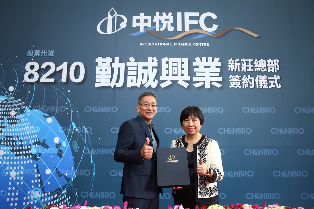 ▲勤誠興業董事長陳美琪(右)今簽約購入「中悦IFC」商辦部分樓層。(圖/中悅建設機構提供)