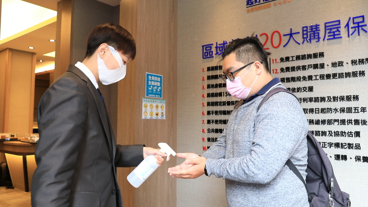 ▲為確保看屋安全,進入接待中心需測量額溫、噴酒精。(圖/業者提供)