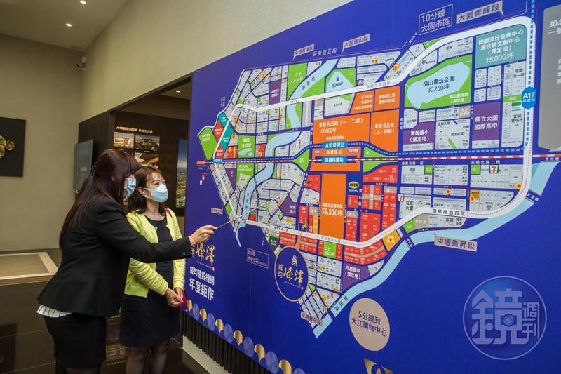 主打3分鐘到高鐵桃園站的建案〈日勝新京站〉,推出中小坪數房型,為機捷A18站區目前最高價的指標建案,專案經理郭旻維指出,青埔的建商可說是百家爭鳴、量體也大,但近期不少案子都能在1年多內完銷,「新京站才開案1個月左右,已銷售出7成。」另一建案〈威均峰澤〉專案副理吳樹清則表示,雖受疫情影響看屋客有減少1/3,但在100組來客中,成交有近4成。