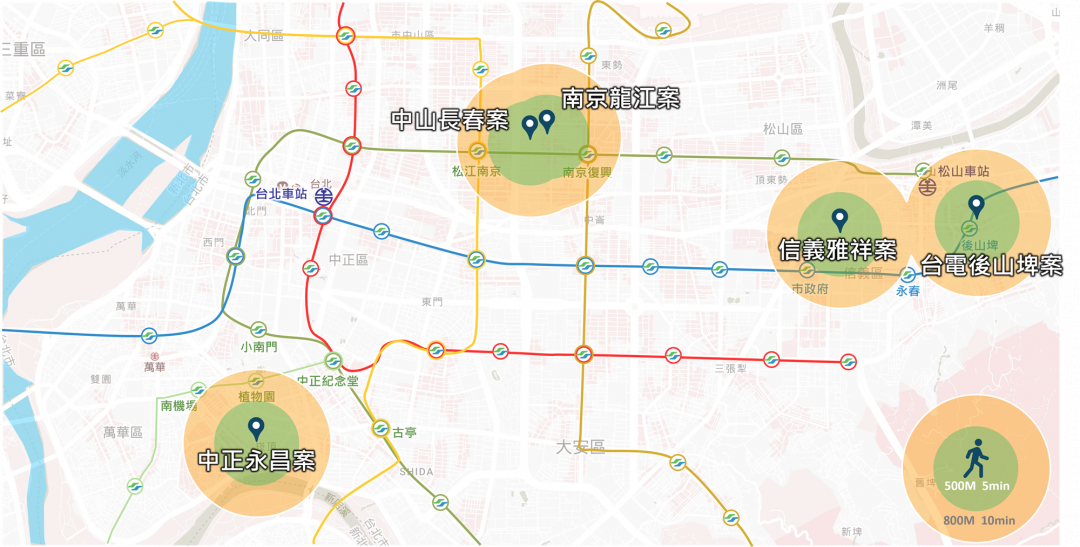 住都中心今年將提升都更量能,推出5大招商案件,5案皆位於台北捷運沿線,分別在南京復興站推出「南京龍江案」、松江南京站推出「中山長春案」、市政府站推出「信義雅祥案」、後山埤站推出「台電後山埤案」、植物園站則是「中正永昌案」。