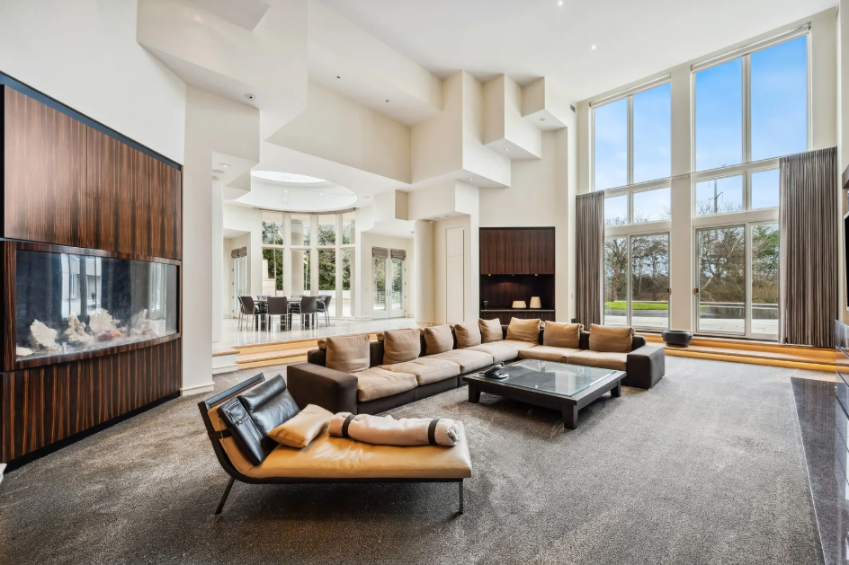 NBC News報導,這間豪宅除了有9間臥室、15.5間衛浴,還有標準籃球場、網球場、健身中心、高爾夫錦標賽級果嶺,另外也有劇院和酒窖、撞球間等,相當奢華高級,總計占地7.39英畝(約9046坪)。依據照片,豪宅內的空間非常大,許多休憩空間都有大片落地窗,採光不錯,且房間、健身房等空間也都有電視可供使用。