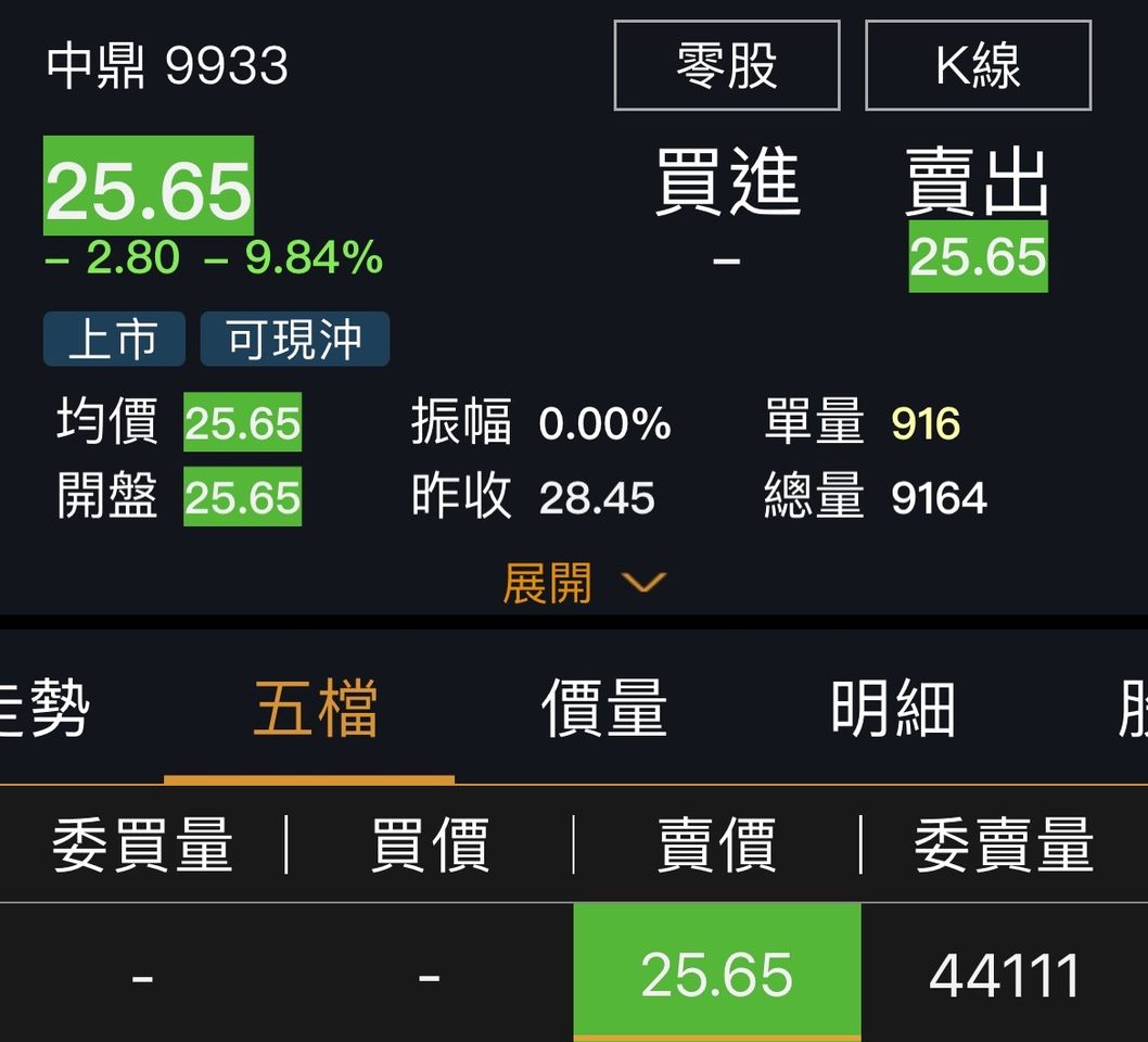 不過,中鼎股價仍無力回天,截至今(22日)已連續吞下4根跌停,今日收在25.65元,超過4.4萬張在跌停價排隊等著賣。