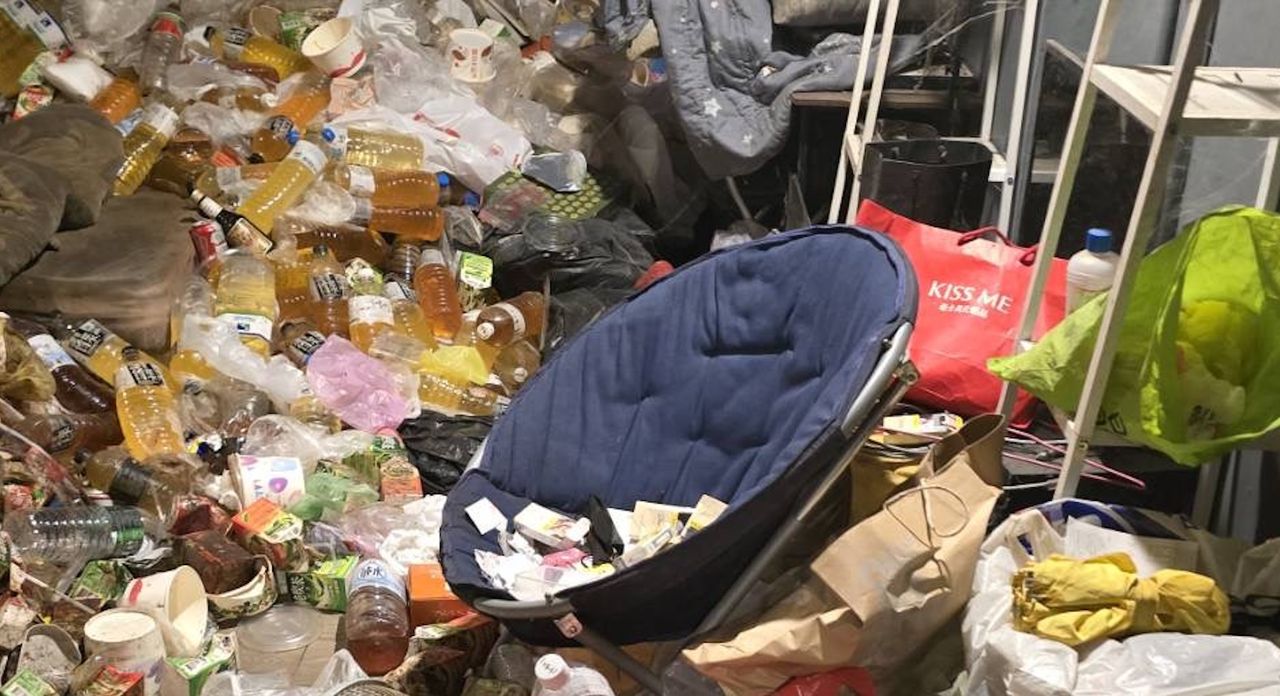 而打開套房的一瞬間,不僅房東,連警察都傻眼,滿滿的垃圾堆積,原本寬敞的空間已經消失,只剩一張星球椅勉強看得出居住人的使用痕跡,更誇張的是,滿山滿谷的垃圾中,還有一瓶瓶寶特瓶裝著黃色液體,在那座小山之中格外顯眼。