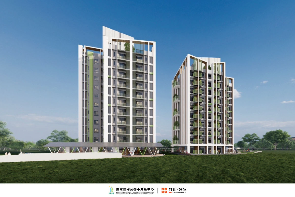 「竹山好室」預計2027年竣工,規劃興建2棟地上10層、地下2層建築物,將提供172戶居住單元。基地採無圍牆開放式設計,建物退縮設置綠美化人行道,營造人本步行環境。兩棟建物間規劃設置陽光草坪廣場,打造與周邊鄰里共享之優質休憩空間;1樓另依據地方社福需求,設置托嬰中心,讓家長放心托育、安心就業。建築物設計方面,則融入竹山當地特色,將竹子的材質及形體意象轉化為外牆裝飾及用色,期許完工後成為竹山鎮新地標。