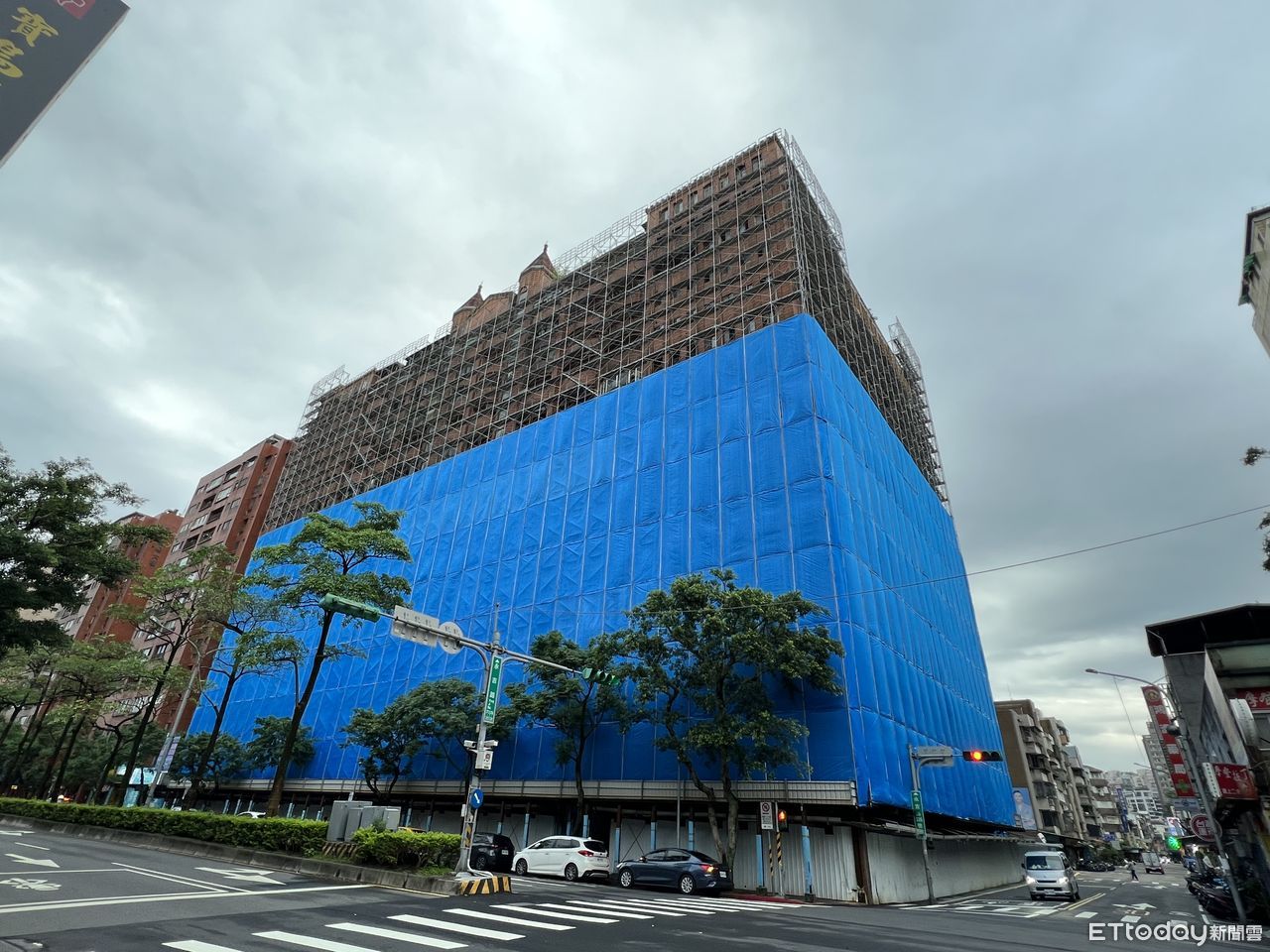 ▲信義區永吉路一棟海砂大樓圍起鷹架,引發熱議。(圖/記者項瀚攝)