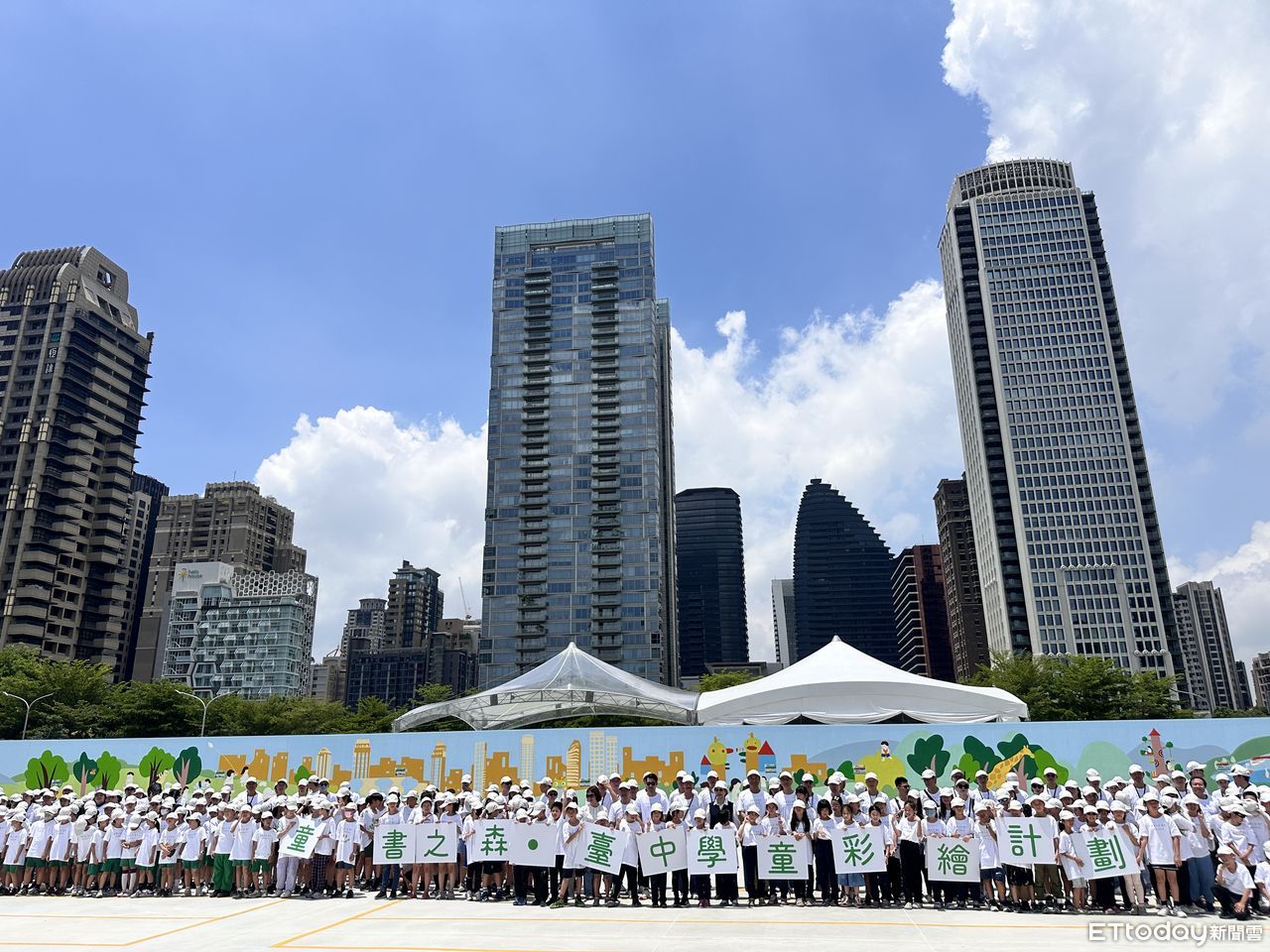 台中最可愛工地上線,由台中市政府文化局、教育局攜手聯聚文教基金會辦理「童書之森・台中」工地圍籬學童彩繪計畫,超過200位來自大同、惠文、惠來國小的學童揮灑創意,將建築大師安藤忠雄的「青蘋果」理念,轉化為充滿創意的書牆。