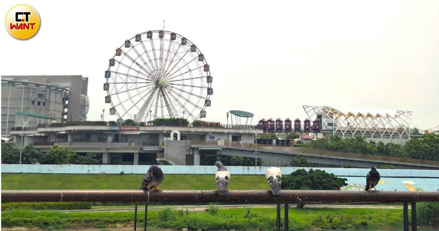 記者觀察,除了施工敲打聲,還伴隨著孩童尖叫歡樂聲,原來水岸的另一頭是兒童新樂園。由於北士科採日本「超級堤防」(符合防洪需求又能兼顧美觀及生態的堤防)設計,相較傳統高牆堤防沒有壓迫感,又更具河岸景觀與親水性,若未來「星群」落腳T17、T18,就算沒有高樓層,也可遠眺水岸與摩天輪、雲霄飛車。