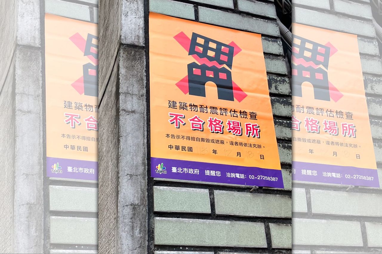 ▲東方工商的中正樓面被貼上建物不合格貼紙,讓師生及家長非常不安。(圖/鏡週刊提供,下同)