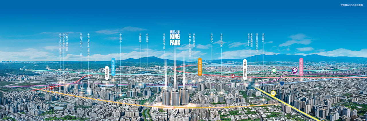 ▲「KING PARK國王大道」位居副都心生活圈核心,坐擁雙語學區與綠意公園,百億造鎮備受矚目。圖為3D示意圖。