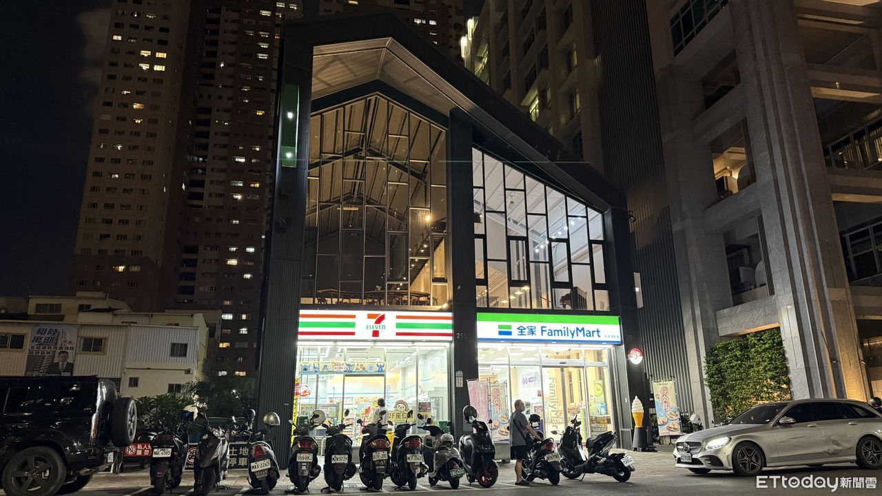 ▲高雄有2間不同品牌超商,開在同一個屋簷下,引來眾多網友嘖嘖稱奇。(圖/記者張雅雲攝)
