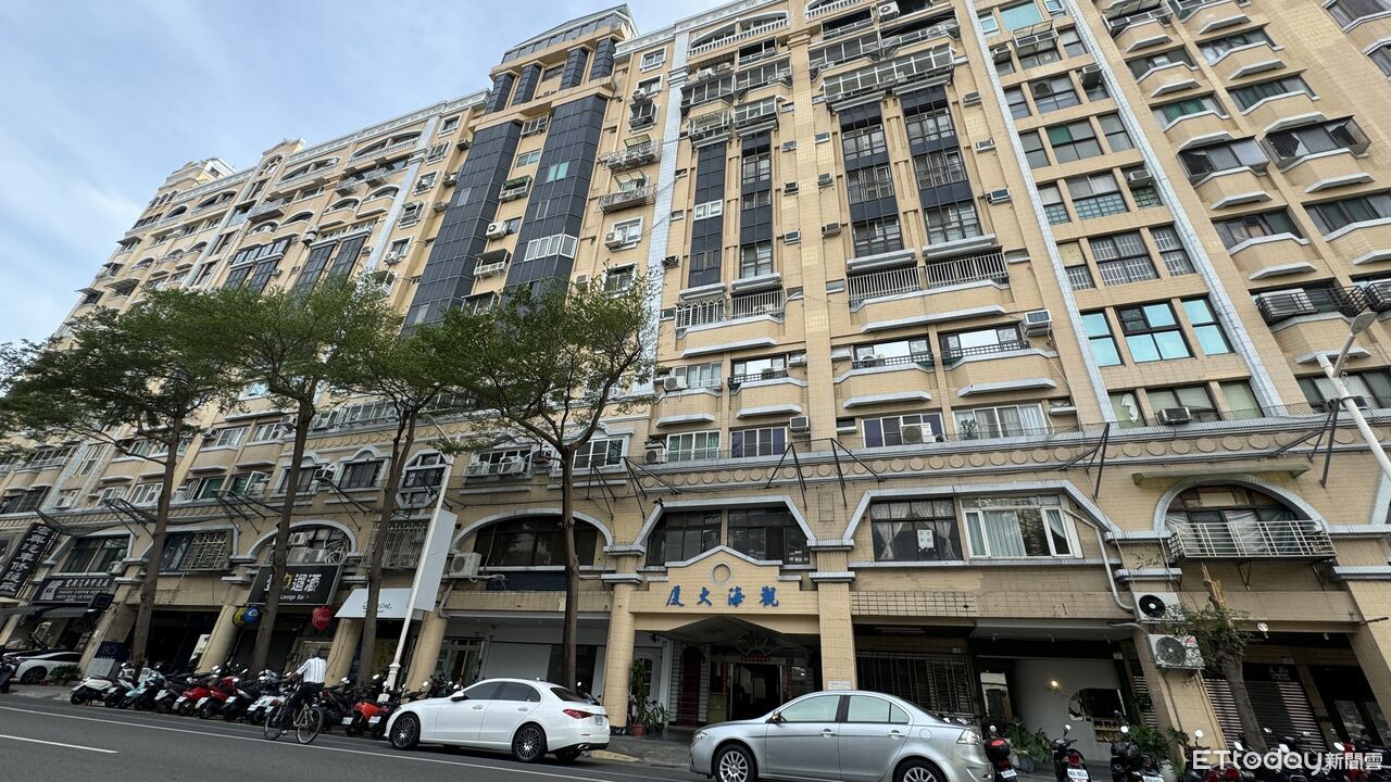 ▲「觀海大廈」位於高雄苓雅區海邊路,位於亞灣的高雄港第一排,住戶指控管委會擅自將地下室樑柱切削、鑽孔,憂心恐重演大樓倒塌。(圖/記者張雅雲攝)