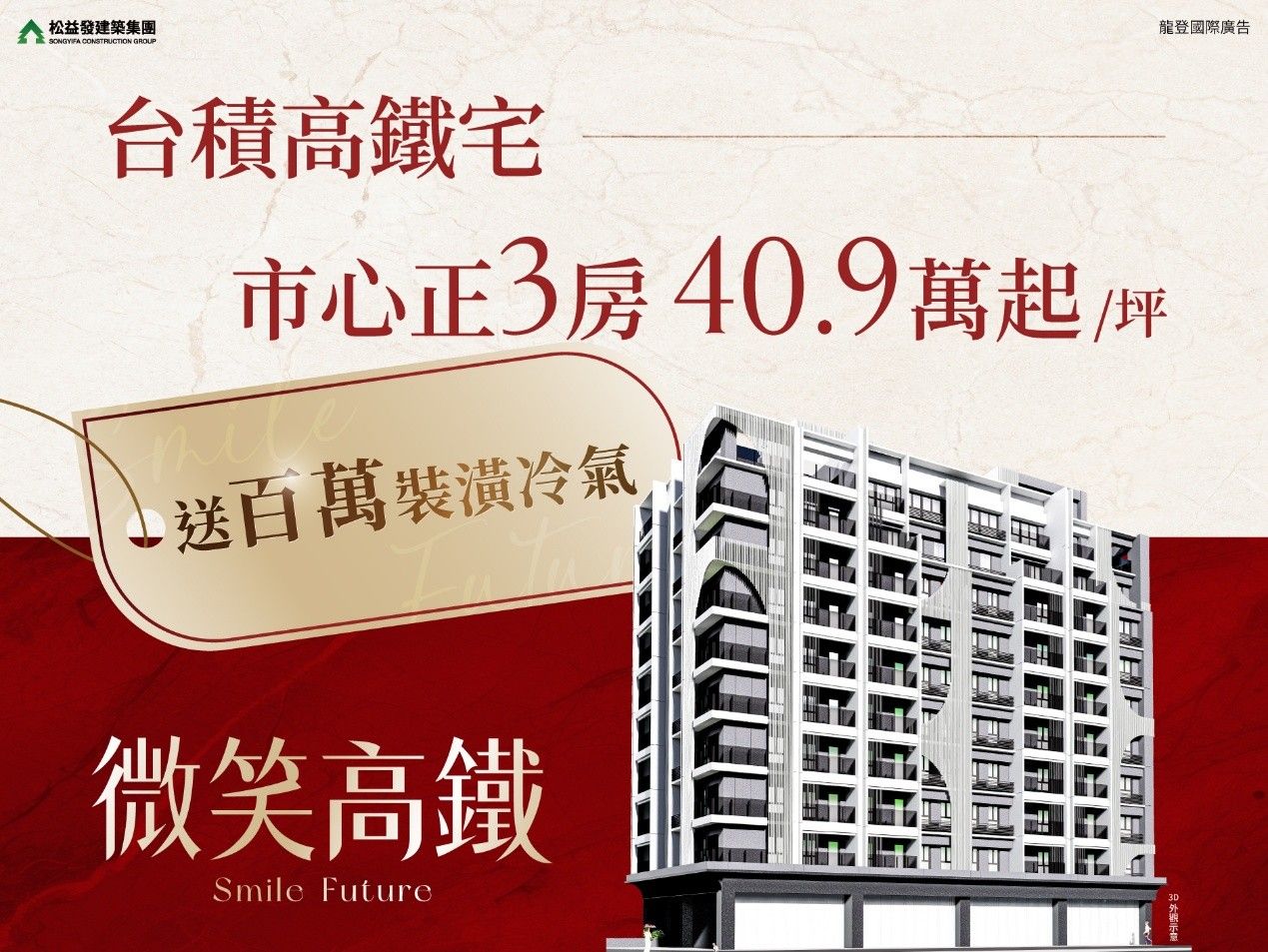 ▲【微笑高鐵】距離高鐵站僅約五分鐘車程,正3房每坪40.9萬起,加碼贈百萬裝潢與冷氣,成為市區首購族熱議亮點。