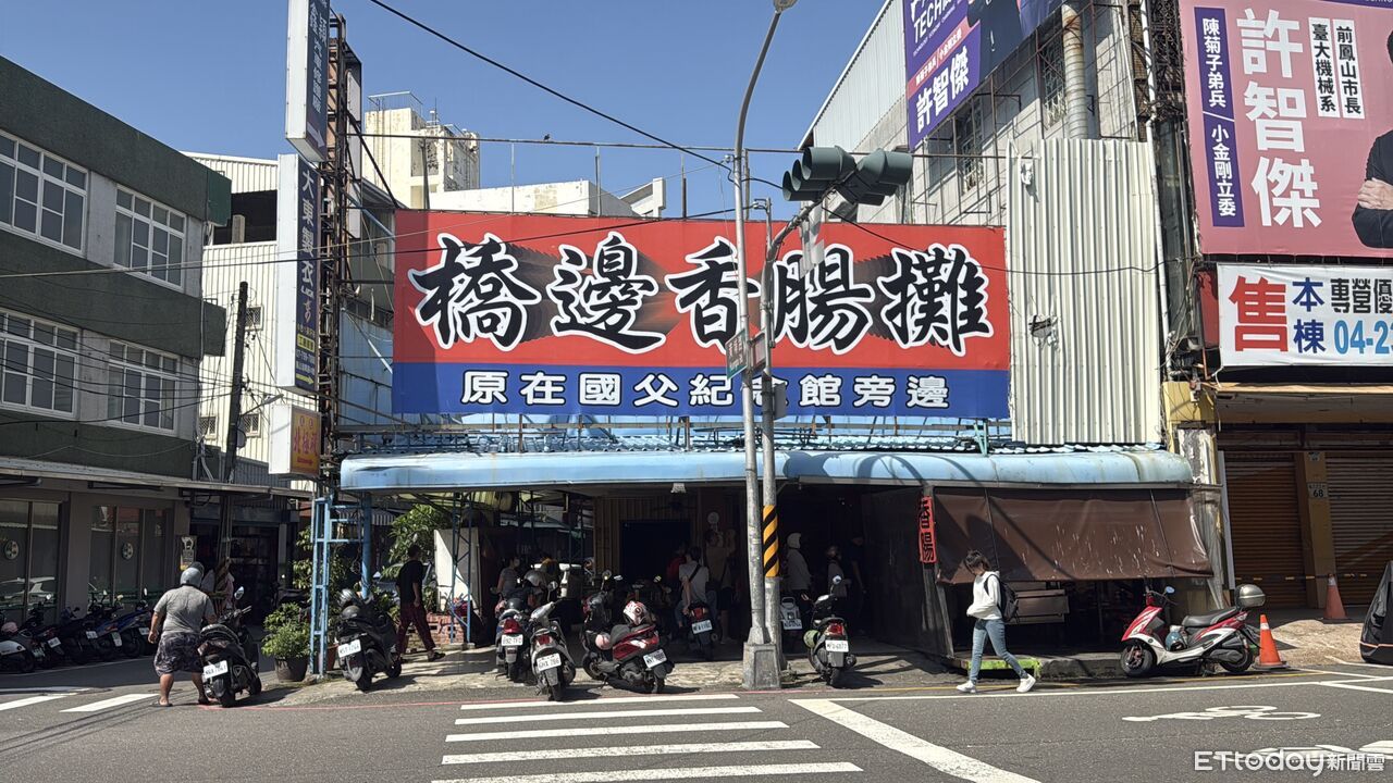 ▲「橋邊香腸攤」位於高雄鳳山,已經開店40多年,每天一開店就就香味撲鼻大排長龍,屋主開出9980萬元出售。(圖/記者張雅雲攝)