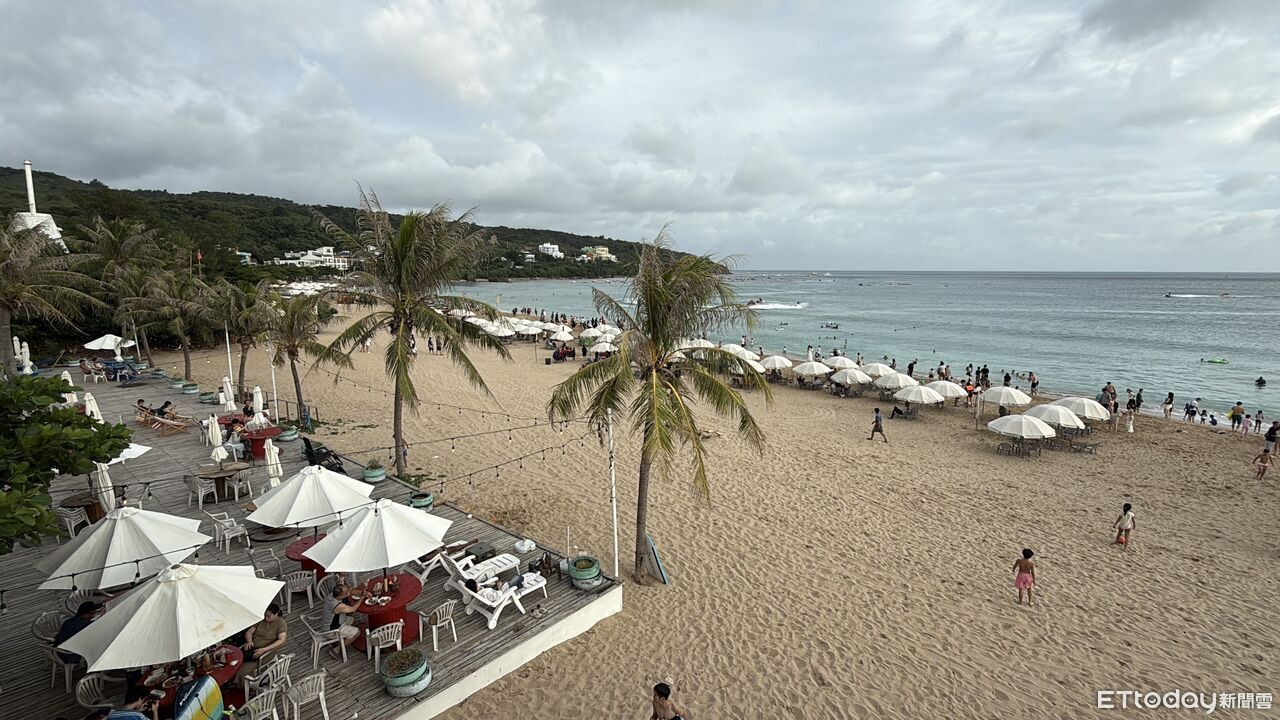 ▲南灣是墾丁知名地標,可以把美麗海景一覽無遺,海景第一排餐廳有不少觀光客用餐。(圖/記者張雅雲攝)