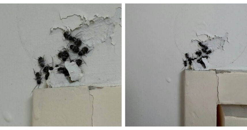這位在Threads上分享經驗的男子寫道:「剛搬進來才半個月,結果回到家就看到這些東西,現在超驚恐,有人知道這是什麼嗎?要噴什麼殺蟲劑才有效?」照片顯示,在他新家門框牆面上至少出現15隻黑色蟑螂,而牆面也有油漆剝落的情況。