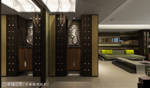 風水考量下沛濬國際設計選以綠色系大理石材,加以傢俱及軟件搭配調色。