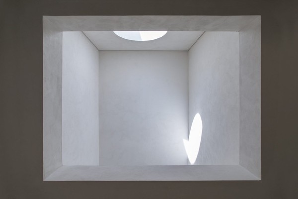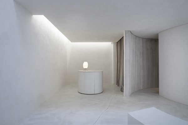 踏進室內,MNMA再運用弧牆獨有的律動性,醞釀一種迤邐蜿蜒的前進意象,不僅視覺上顯得流暢,混凝土空間也因曲線而變得柔婉輕盈。此外,為了在保有純白場域的潔淨感以及材料肌理變化之間取得平衡,MNMA擷取水泥、木頭以及石灰石等材加以仔細配襯,使細節同中有異,但所有元素定位後,整個場域卻可儼如石膏脫模般,臻至一體。