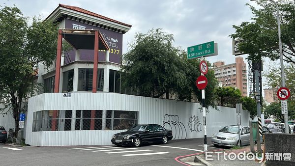 ▲文昌東一街的「蜜雪兒汽車旅館」已掛上惠宇建設廣告。(圖/記者陳筱惠攝)