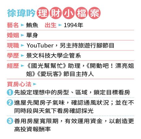 名人理財/不靠爸媽25歲入手千萬房 藝人徐瑋吟買屋堅持3原則