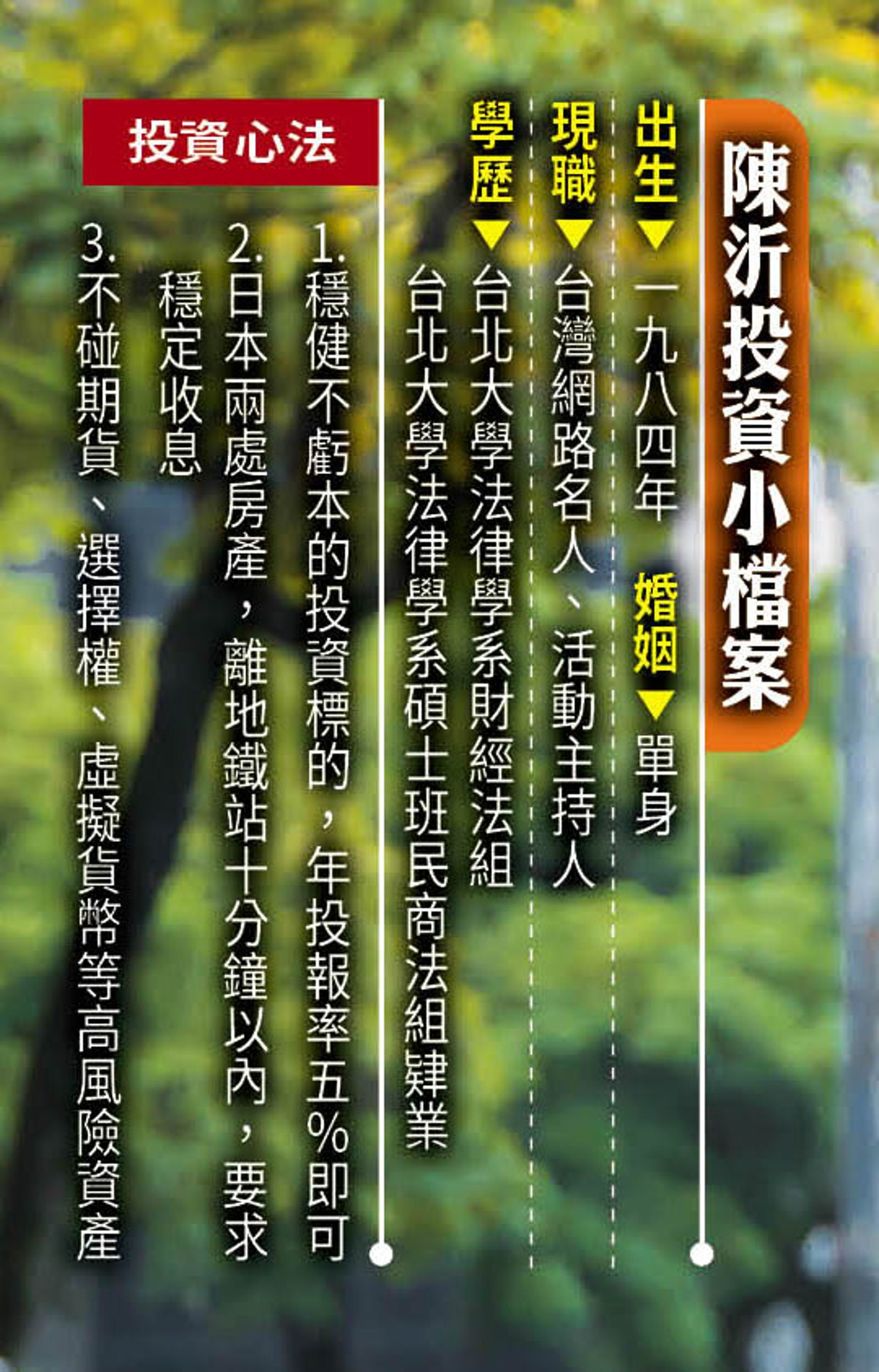 名人理財/極簡也能致富 陳沂靠無聊理財年收200萬