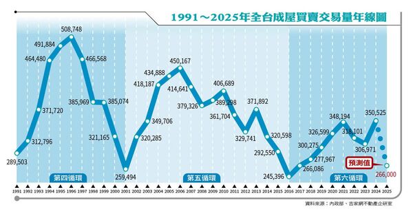 以2025年第1季來看,房市交易量48,028棟,創9年來季交易量新低,預估全年交易量將陷入26萬棟保衛戰,是9年來新低,更是歷年跌幅最多的1年。