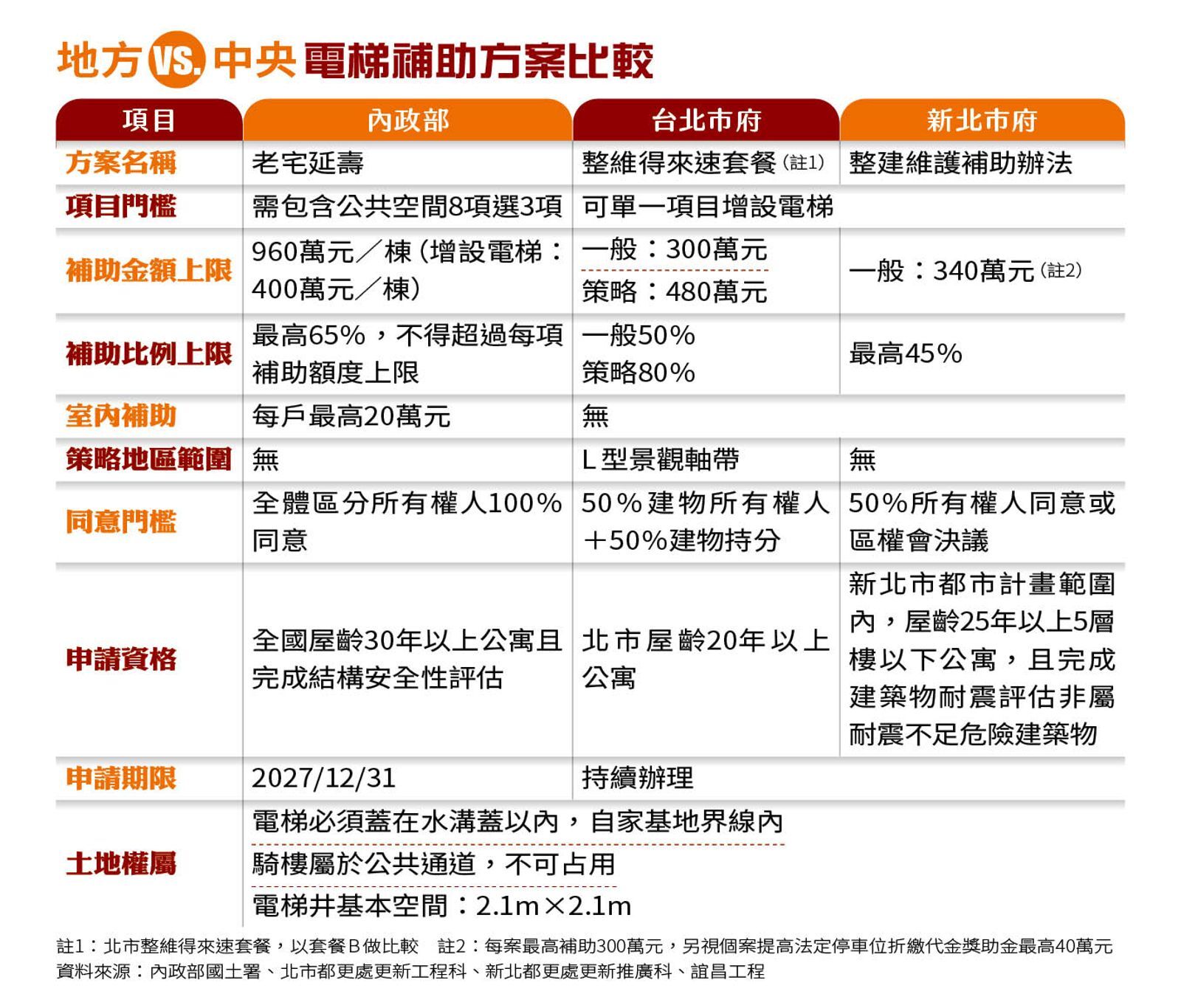 再看新北市部分,每案最高補助300萬元,另視個案提高法定停車位折繳代金獎助金最高40萬元,共340萬元;補助比例上限則為45%。