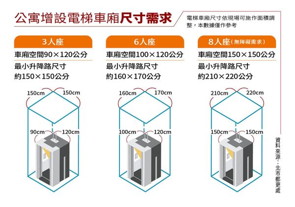 另外,住在台北市信義富台社區的陳連壽,則是用「權狀增值」說服鄰居:「增設電梯之後,會新增約八坪的公設,依法分回給同意戶,每戶權狀大約增加一坪;同時,房價也會因為電梯加持而上升。」